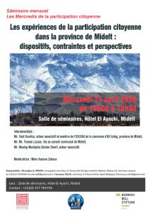 Séminaire, Les Mercredis de la participation citoyenne : Les expériences de la participation citoyenne dans la province de Midelt : dispositifs, contraintes et perspectives
