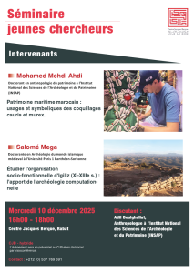 Intervenant : Mohammed Mehdi Ahdi, Doctorant en anthropologie du patrimoine à l’Institut National des Sciences de l’Archéologie et du Patrimoine (INSAP).